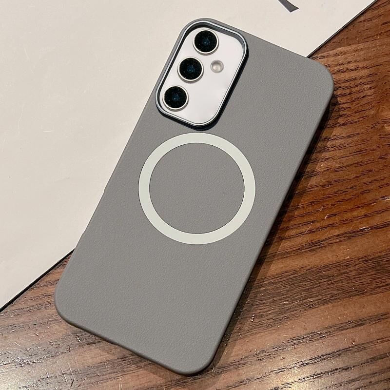 Θήκη τηλεφώνου για Samsung Galaxy A55 5G με υφή δέρματος και σχεδιασμό MagSafe, πλήρης κάλυψη (Γκρι)
