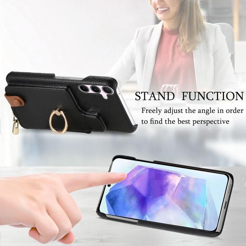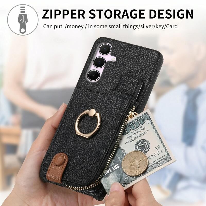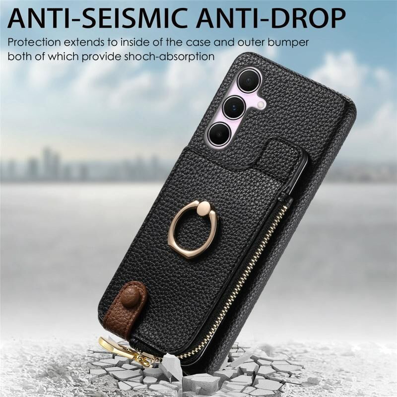 Για Samsung Galaxy A55 5G Litchi δέρμα λάδι Edge δαχτυλίδι φερμουάρ πορτοφόλι πίσω υπόθεση τηλεφώνου (μαύρο)