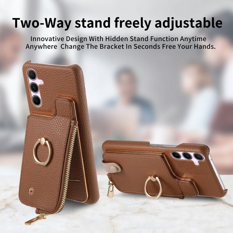 Για Samsung Galaxy A55 5G Litchi δέρμα λάδι Edge δαχτυλίδι φερμουάρ πορτοφόλι πίσω υπόθεση τηλεφώνου (καφέ)