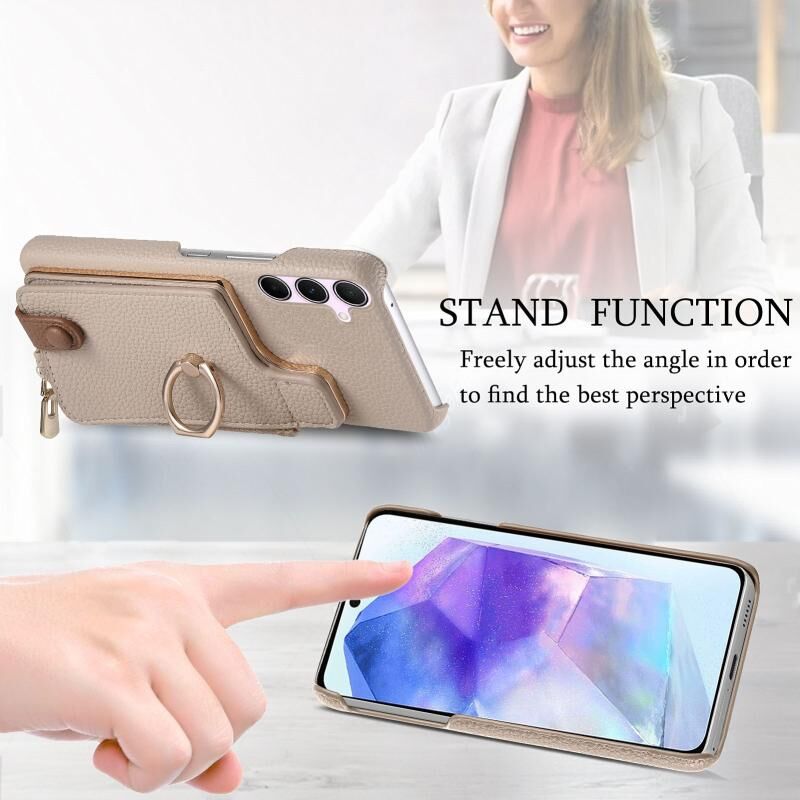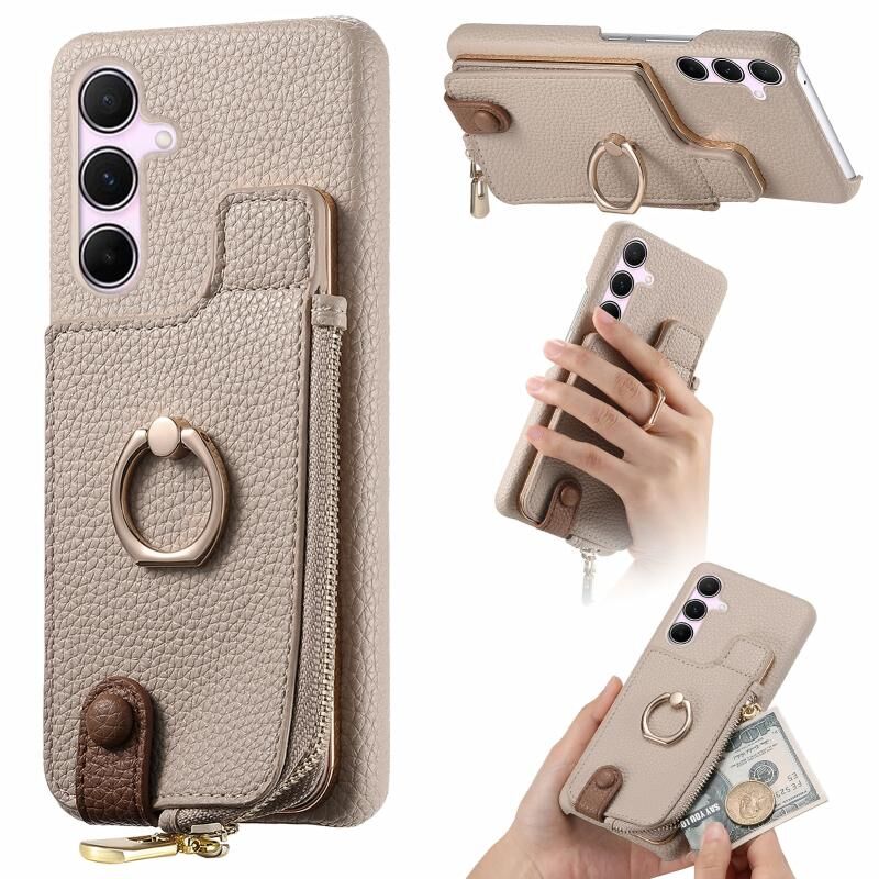 Για Samsung Galaxy A55 5G Litchi δέρμα λάδι Edge δαχτυλίδι φερμουάρ πορτοφόλι πίσω υπόθεση τηλεφώνου (λευκό)
