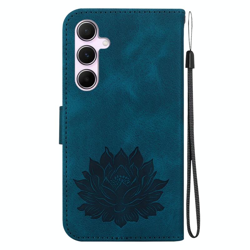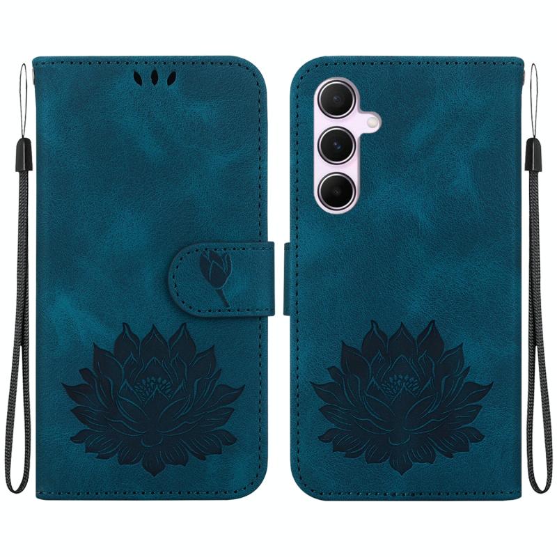 For Samsung Galaxy A55 5G Lotus Embossed Leather Phone Case(Dark Blue)