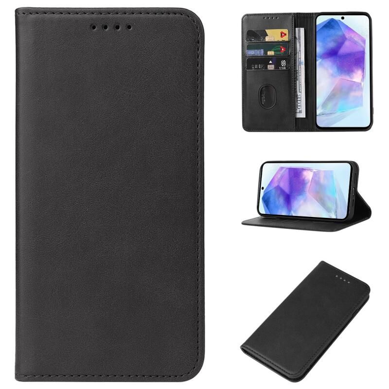 Για Samsung Galaxy A55 5G Μαγνητικό κλείσιμο δερμάτινη θήκη τηλεφώνου(Μαύρο)