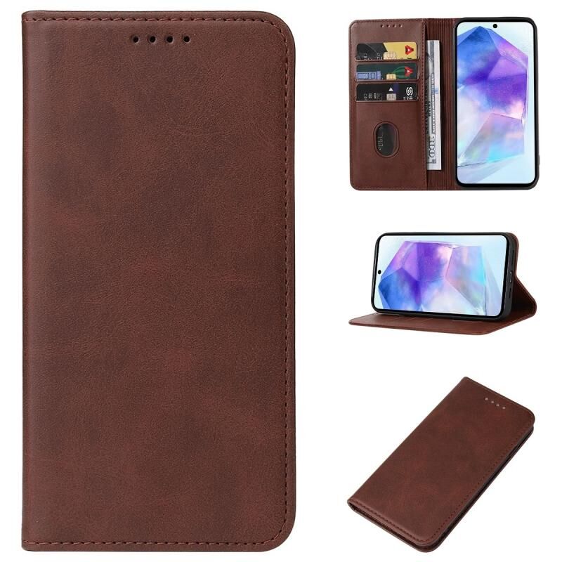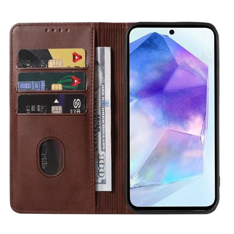 Για Samsung Galaxy A55 5G Μαγνητικό κλείσιμο δερμάτινη θήκη τηλεφώνου (καφέ)
