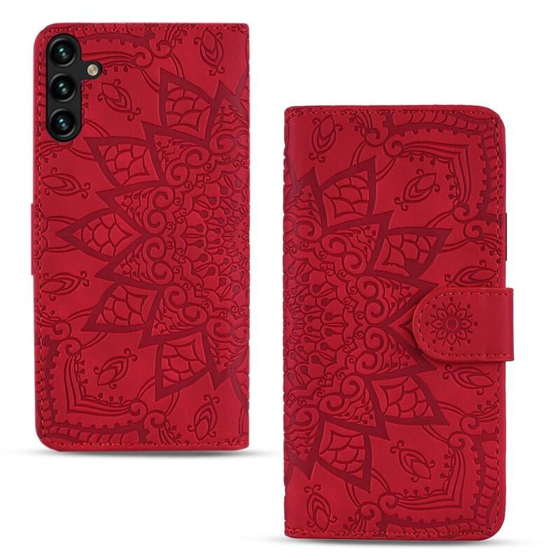 Θήκη τηλεφώνου Samsung Galaxy A55 5G Mandala Embossed Διπλού Δέρματος Μοσχαριού (Καφέ)