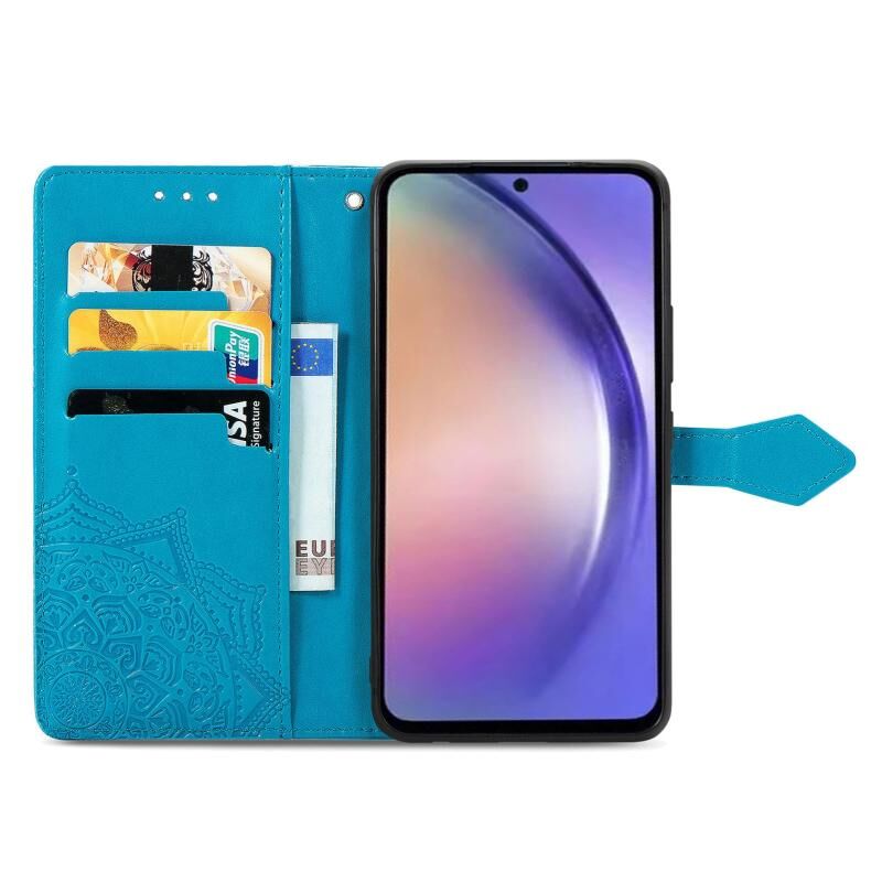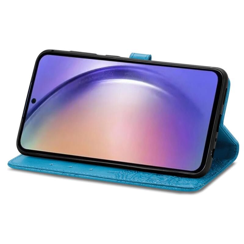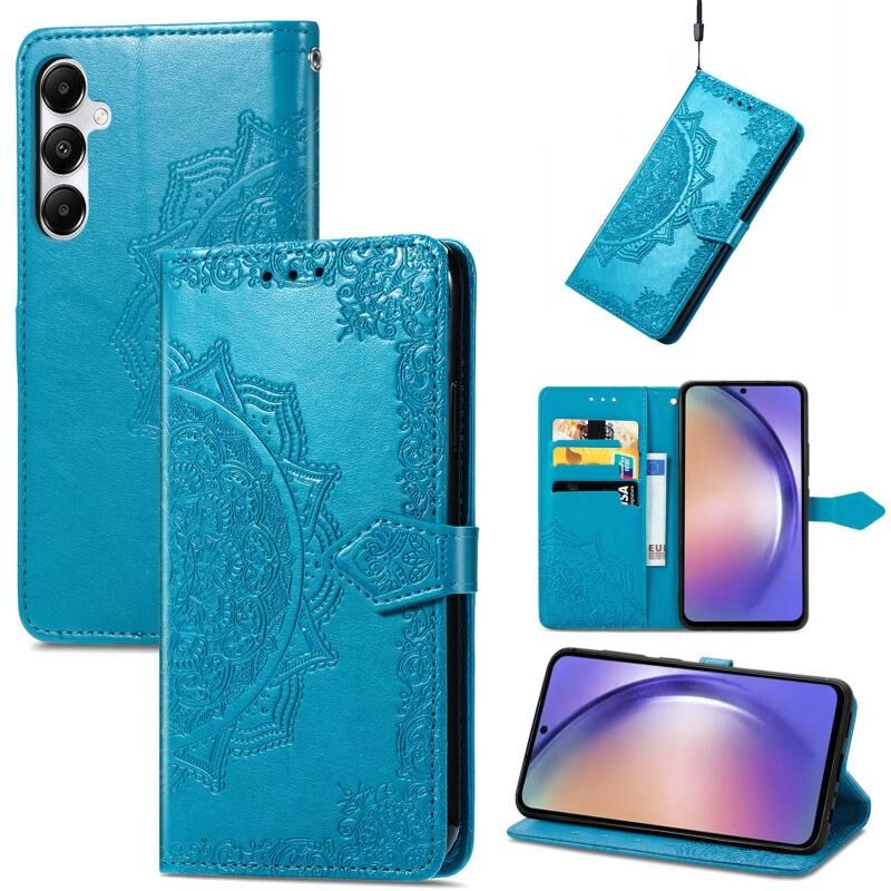 Για Samsung Galaxy A55 5G Mandala λουλούδι ανάγλυφο δερμάτινη θήκη τηλεφώνου (μπλε)