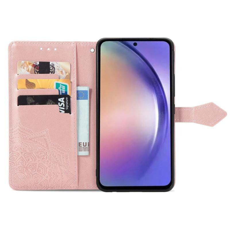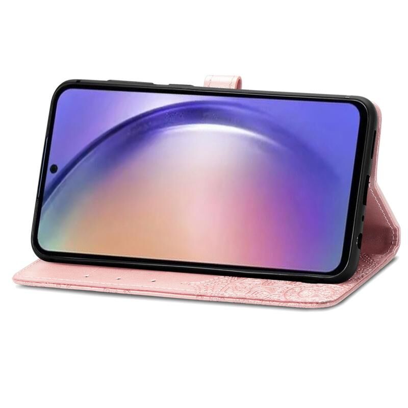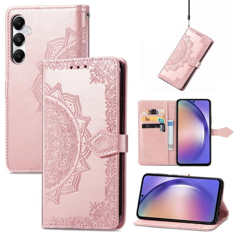 Για Samsung Galaxy A55 5G Mandala λουλούδι ανάγλυφο δερμάτινη θήκη τηλεφώνου (Rose Gold)
