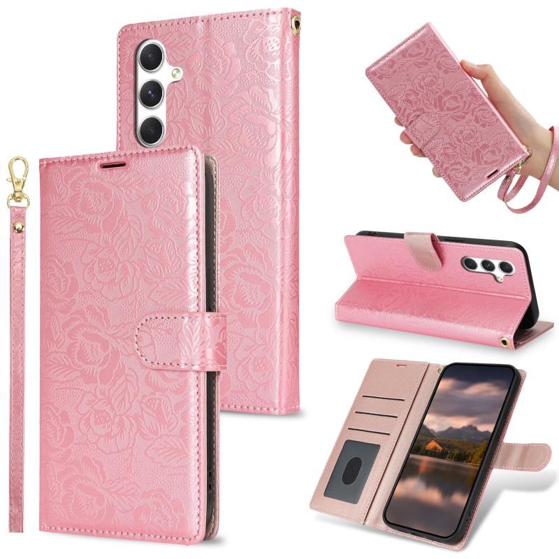 For Samsung Galaxy A55 5G Peony Flowers Imprint Leather Phone Case(Pink)