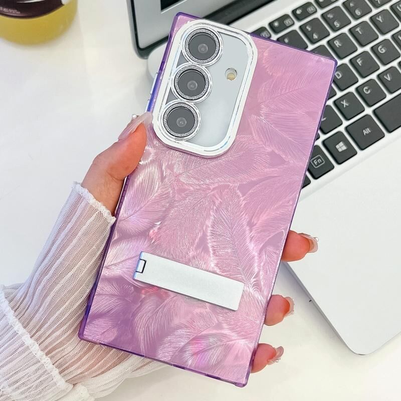 Για Samsung Galaxy A55 5G Επιμετάλλωση Glitter Υφή Πτυσσόμενα κάτοχος TPU τηλέφωνο υπόθεση με φακό ταινία (μοβ φτερά)
