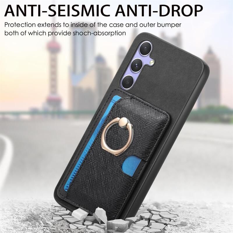 Θήκη κινητού Samsung Galaxy A55 5G Retro Cross από δέρμα με ενσωματωμένη δακτύλιο και θήκη για κάρτες στο πλάι, συμβατή με MagSafe (Καφέ)