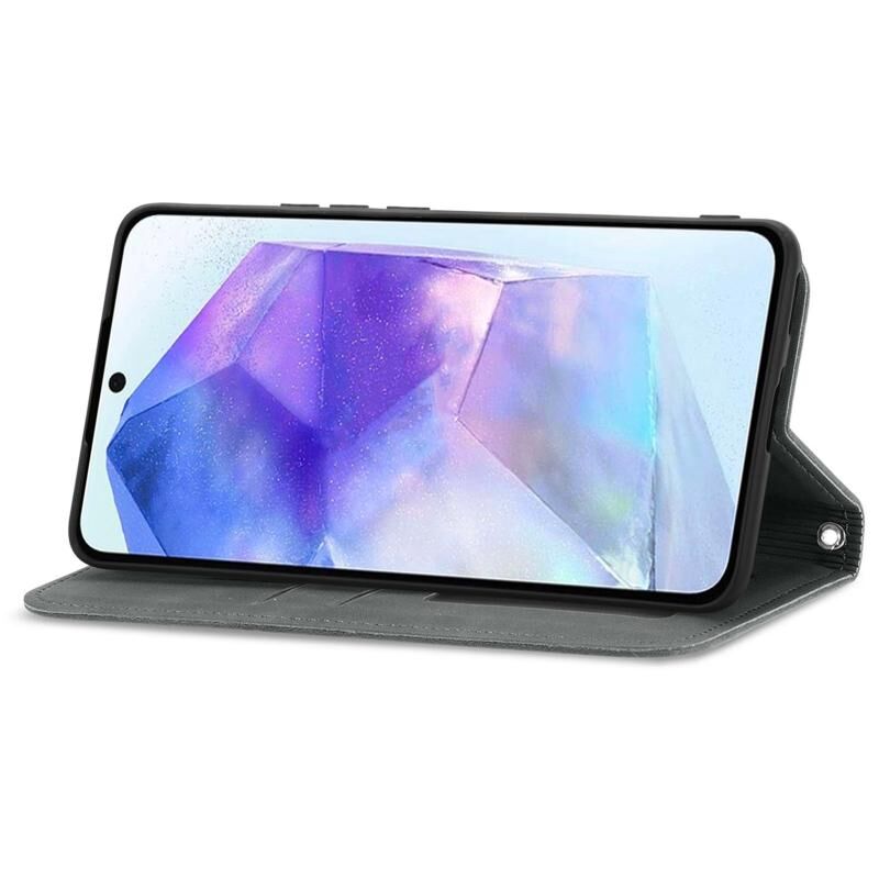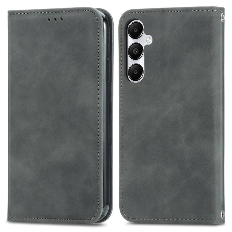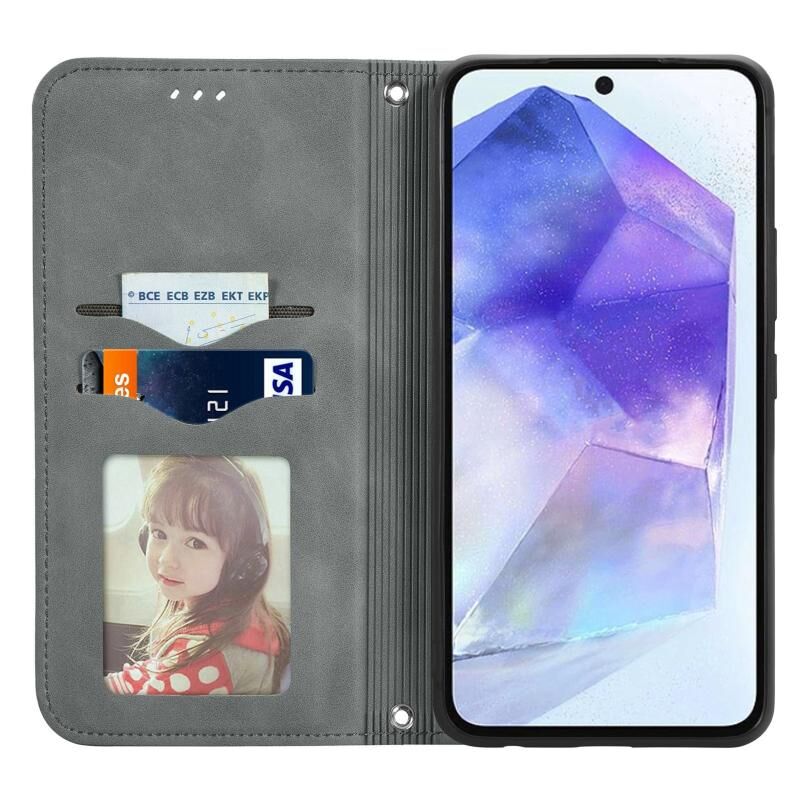Για Samsung Galaxy A55 5G Retro δέρμα αίσθηση δέρματος μαγνητική δερμάτινη θήκη τηλεφώνου (γκρι)
