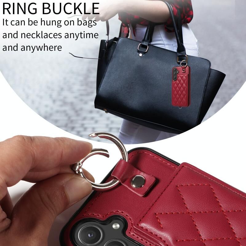 Για Samsung Galaxy A55 5G Rhombic υφή κάρτα τσάντα υπόθεση τηλεφώνου με σύντομο κορδόνι (κόκκινο κρασί)