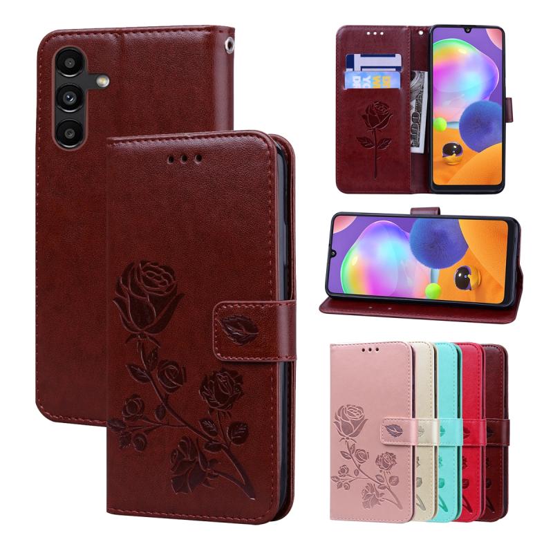 For Samsung Galaxy A55 5G Rose Embossed Flip PU Leather Phone Case(Brown)