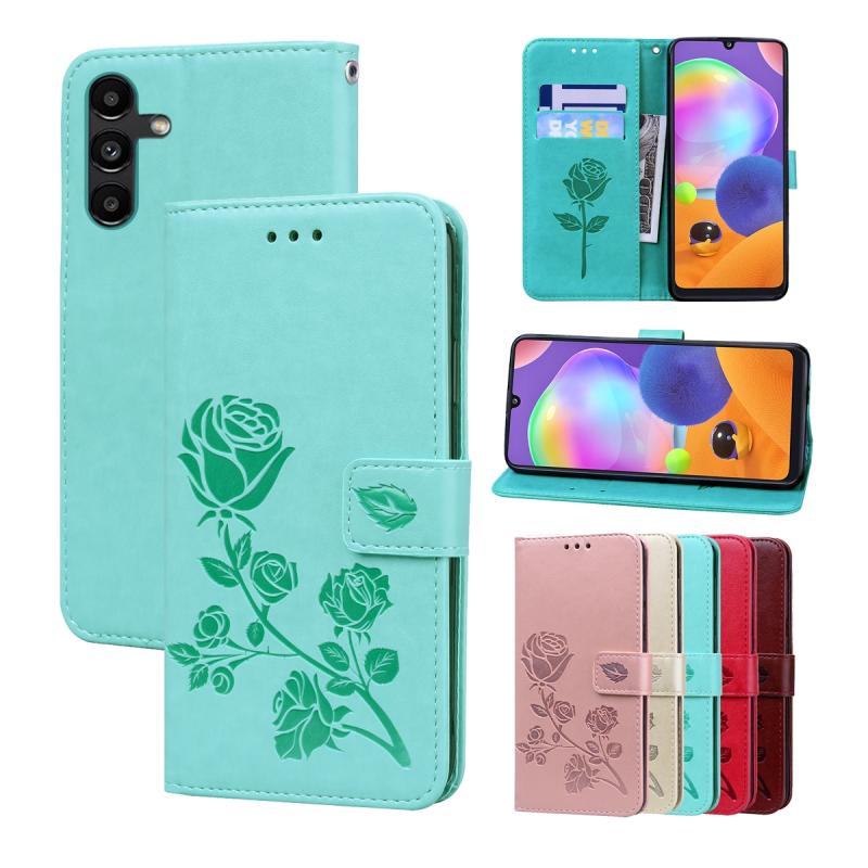 For Samsung Galaxy A55 5G Rose Embossed Flip PU Leather Phone Case(Green)
