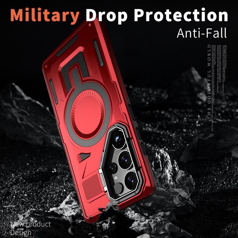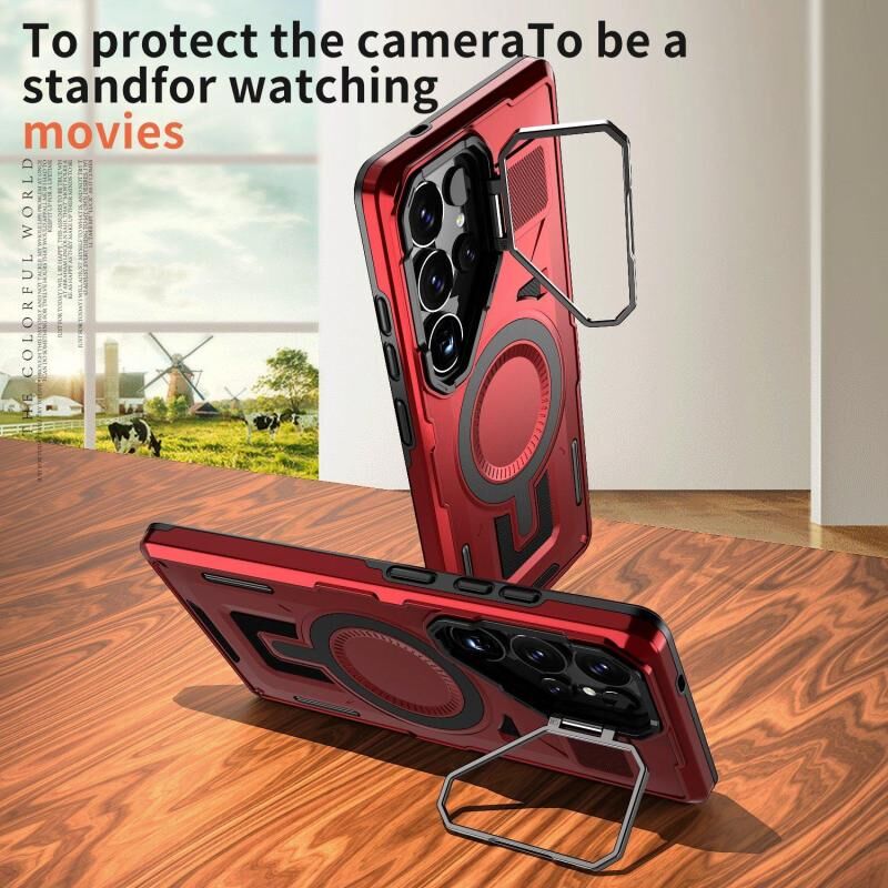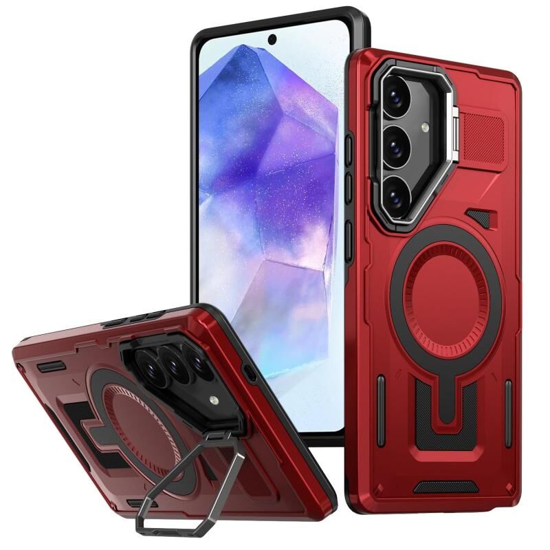 Θήκη κινητού τηλεφώνου Samsung Galaxy A55 5G Shield Hollow Frame Holder MagSafe (Κόκκινο)
