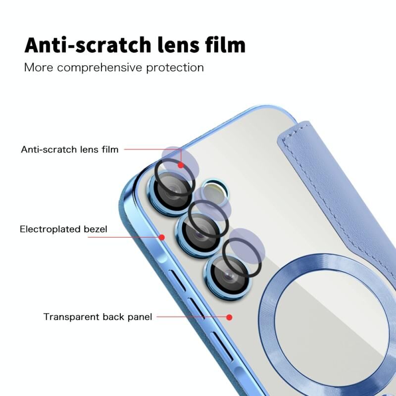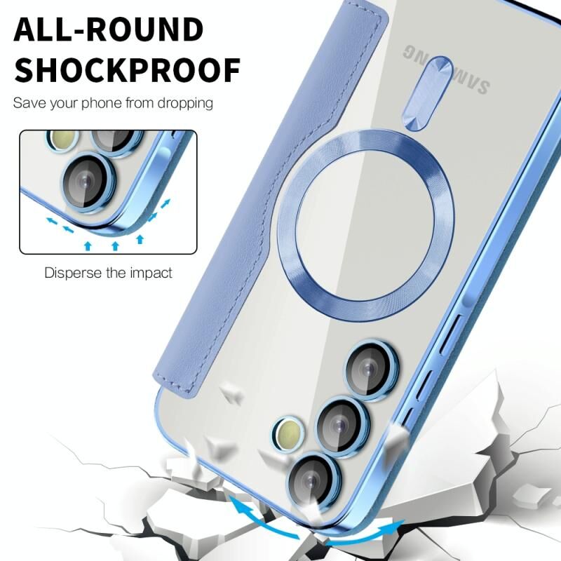 Θήκη κινητού Samsung Galaxy A55 5G Shield MagSafe RFID Anti-theft από δέρμα με ρόμβους (Σκούρο Μπλε)