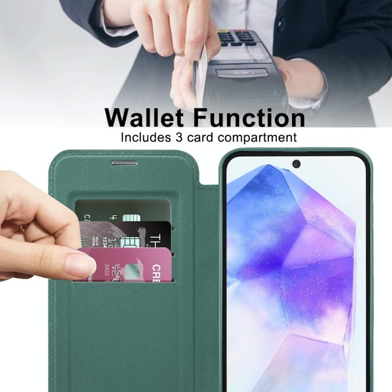 Θήκη κινητού Samsung Galaxy A55 5G Shield MagSafe RFID Anti-theft από δέρμα με ρόμβους (Σκούρο Μπλε)