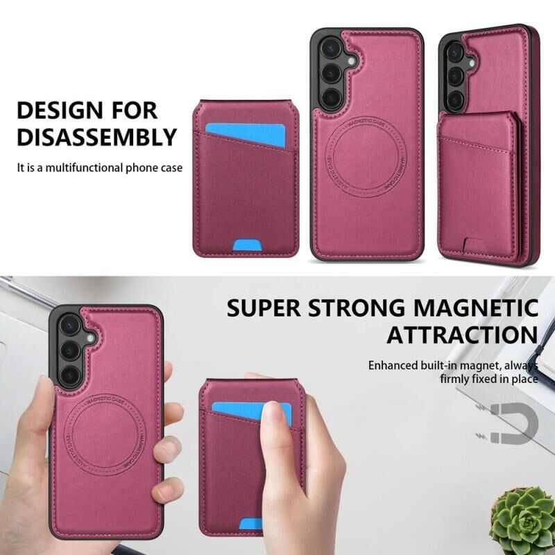 Θήκη κινητού τηλεφώνου Samsung Galaxy A55 5G με αποσπώμενη θήκη καρτών Magsafe, αίσθηση δέρματος (Κρασοκόκκινο)