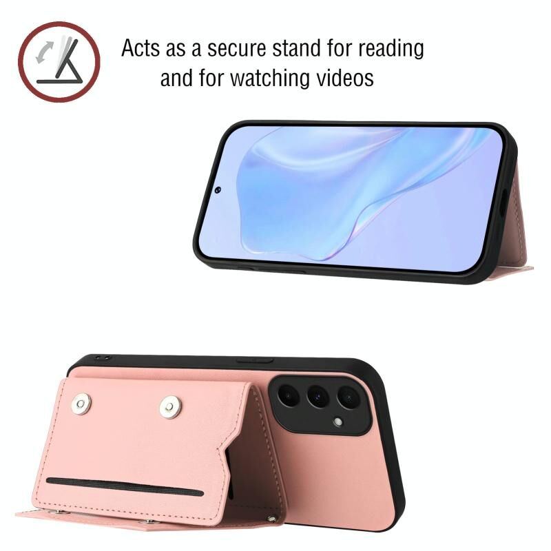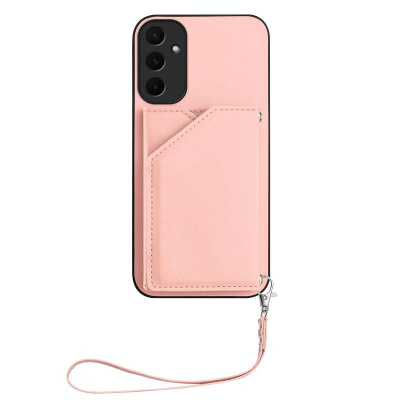 Για το Samsung Galaxy A55 5G δέρμα αίσθηση τέσσερις υποδοχές κάρτας υπόθεση τηλεφώνου με λουράκι καρπού (ρόζ)