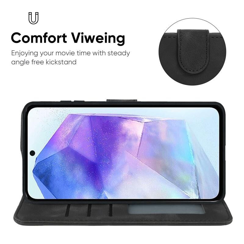 Θήκη τηλεφώνου Samsung Galaxy A55 5G με υφή δέρματος και γεωμετρικά σχέδια (Μαύρο)