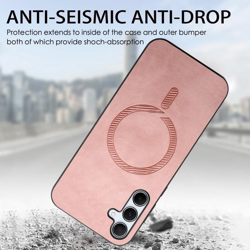 Θήκη κινητού τηλεφώνου για Samsung Galaxy A55 5G, μονόχρωμη, ρετρό, με μαγνητική σύνδεση (Magsafe), από δερματίνη (PU) (ρόζ)