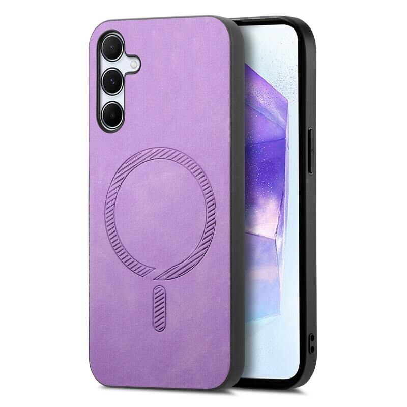 Θήκη κινητού τηλεφώνου για Samsung Galaxy A55 5G, μονόχρωμη, ρετρό, με μαγνητική σύνδεση (Magsafe), από δερματίνη (PU) (Ροζ)