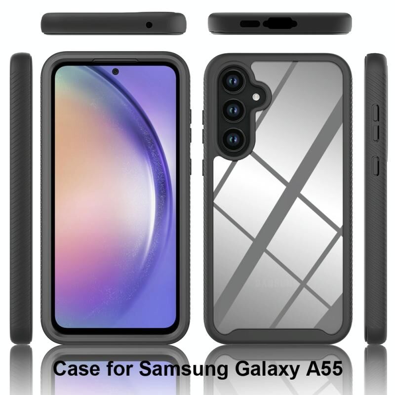 Για Samsung Galaxy A55 5G Starry Sky στερεό χρώμα Shockproof TPU Clear PC τηλέφωνο υπόθεση (μαύρο)