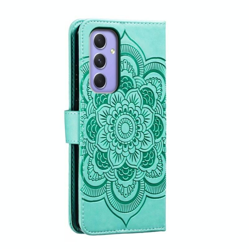 Για Samsung Galaxy A55 5G Sun Mandala ανάγλυφο μοτίβο τηλέφωνο δερμάτινη θήκη (πράσινο)