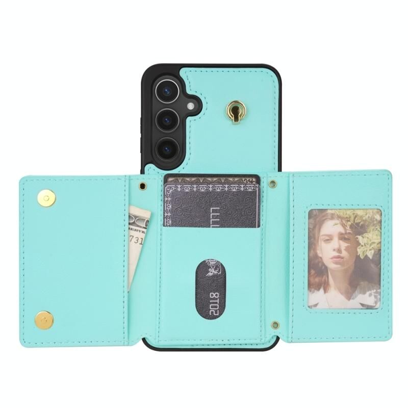 Για το Samsung Galaxy A55 5G Τρεις φορές κάρτα τσάντα υπόθεση τηλεφώνου με μακρύ κορδόνι (μέντα)