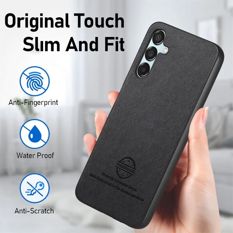 Για Samsung Galaxy A55 5G Twill Fabric δέρμα δέρμα πίσω υπόθεση τηλεφώνου (Μαύρο)