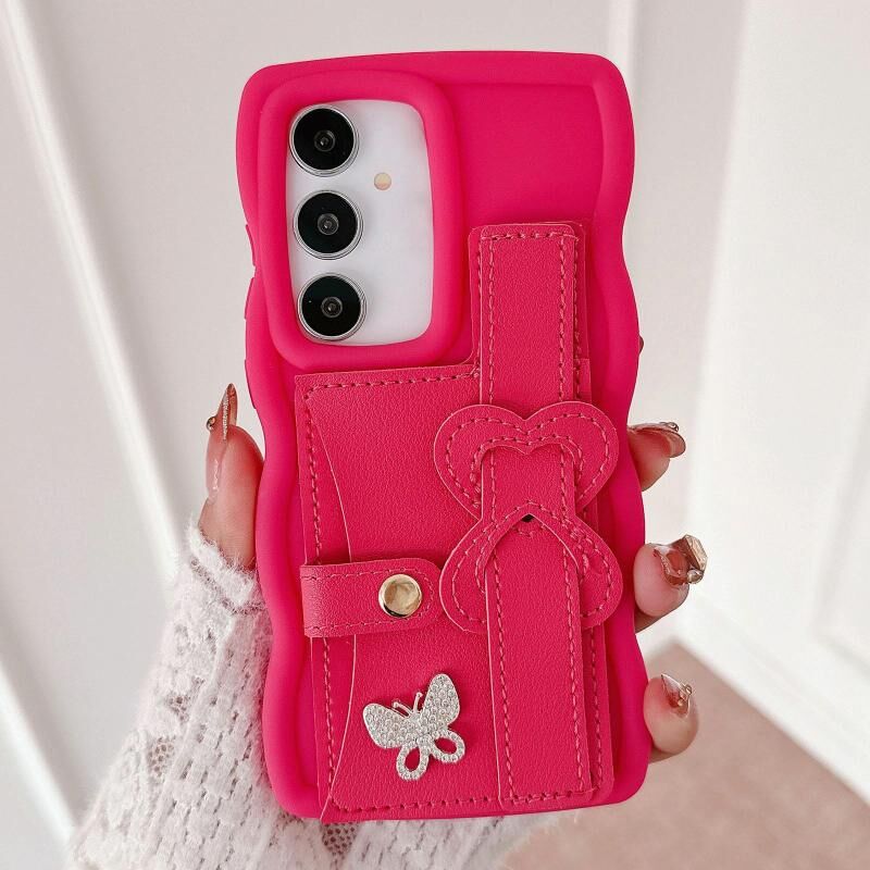 For Samsung Galaxy A55 5G Wristband Leather Love Holder Card Bag Phone Case(Rose Red)