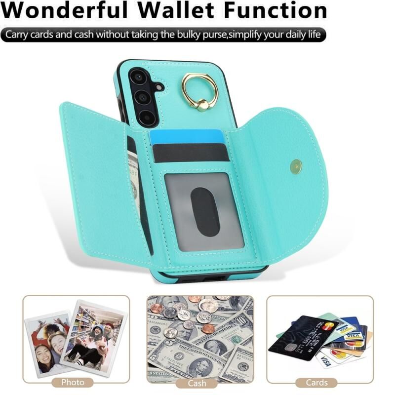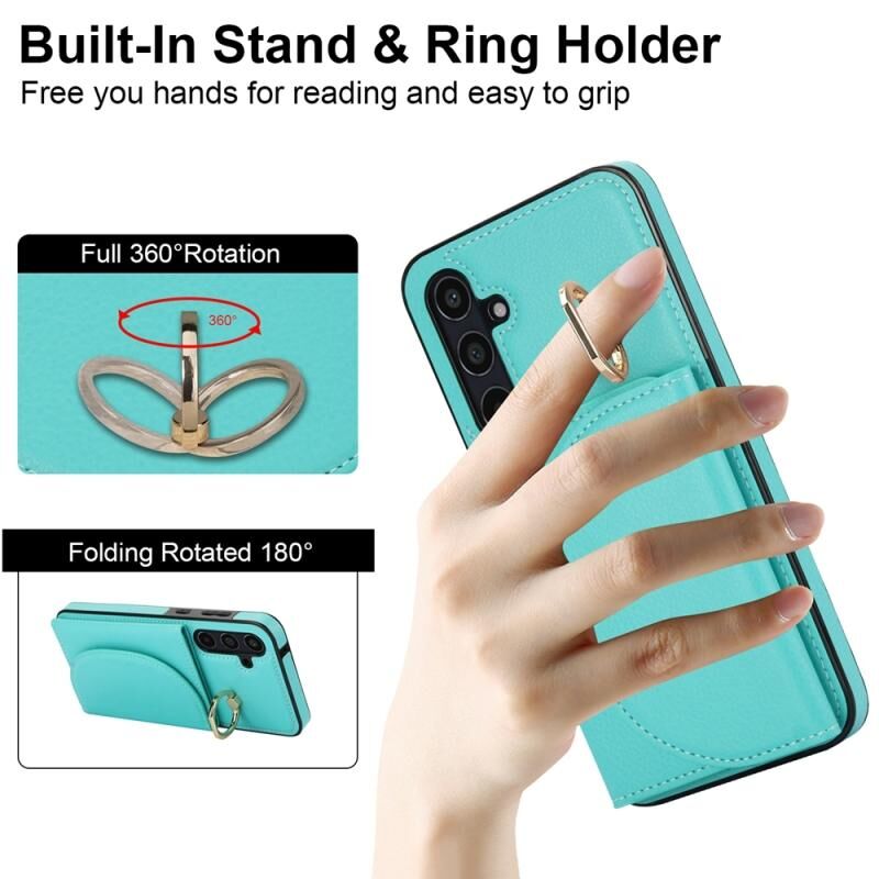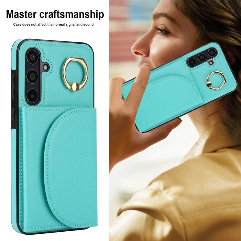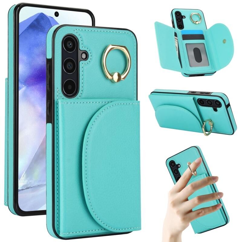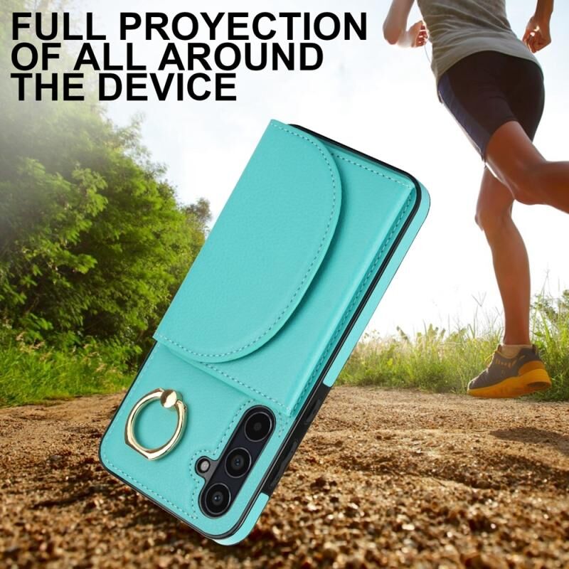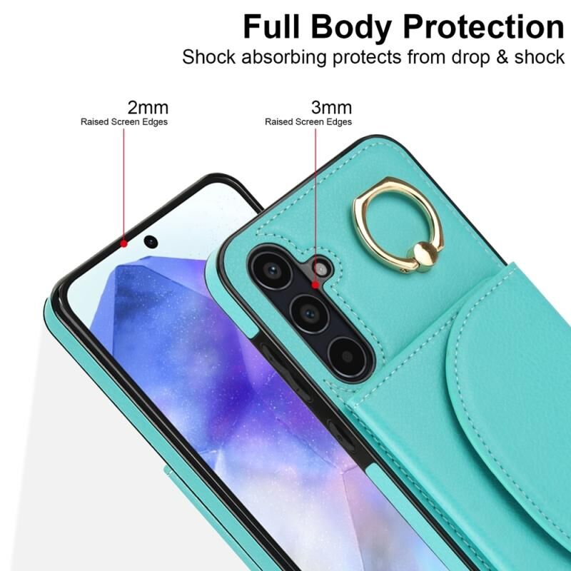 Για Samsung Galaxy A55 5G YM007 Ring κάτοχος κάρτα τσάντα τσάντα δέρμα αίσθηση υπόθεση τηλεφώνου (πράσινο)