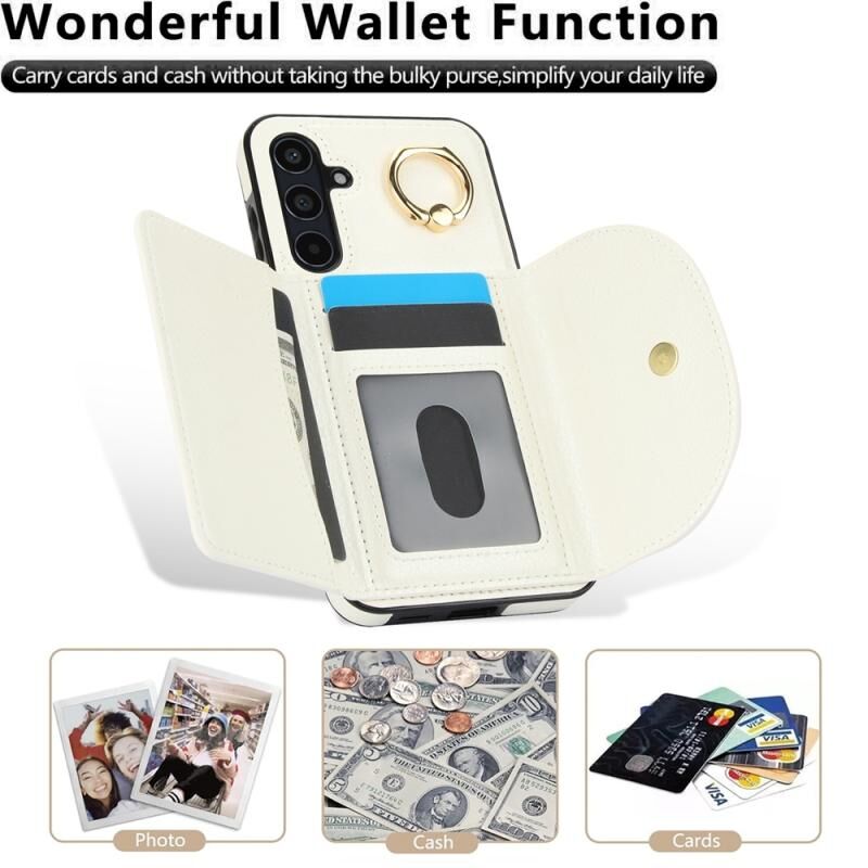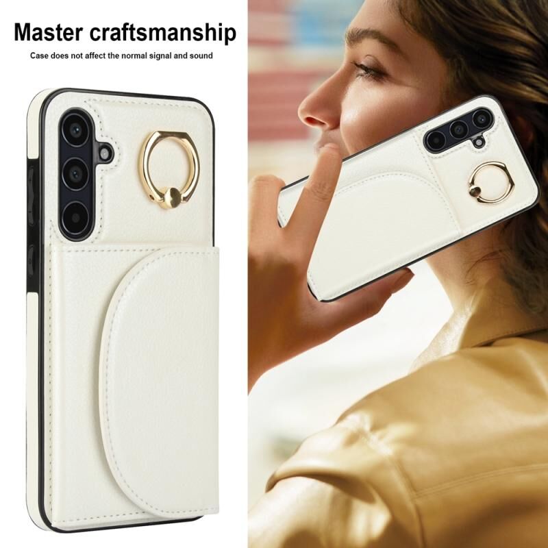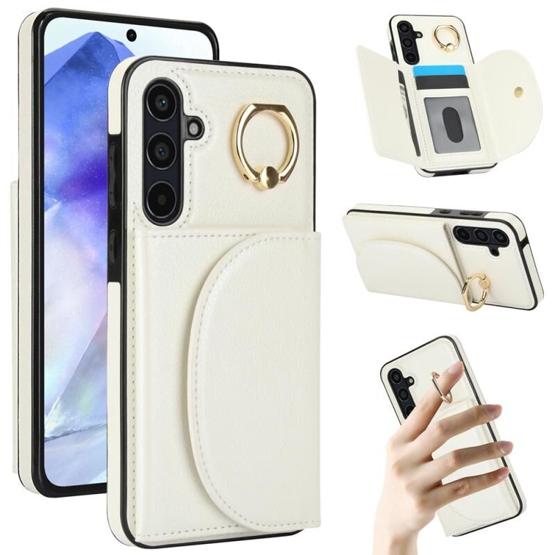 Για Samsung Galaxy A55 5G YM007 Ring κάτοχος κάρτα τσάντα τσάντα δέρμα αίσθηση υπόθεση τηλεφώνου (Λευκό)
