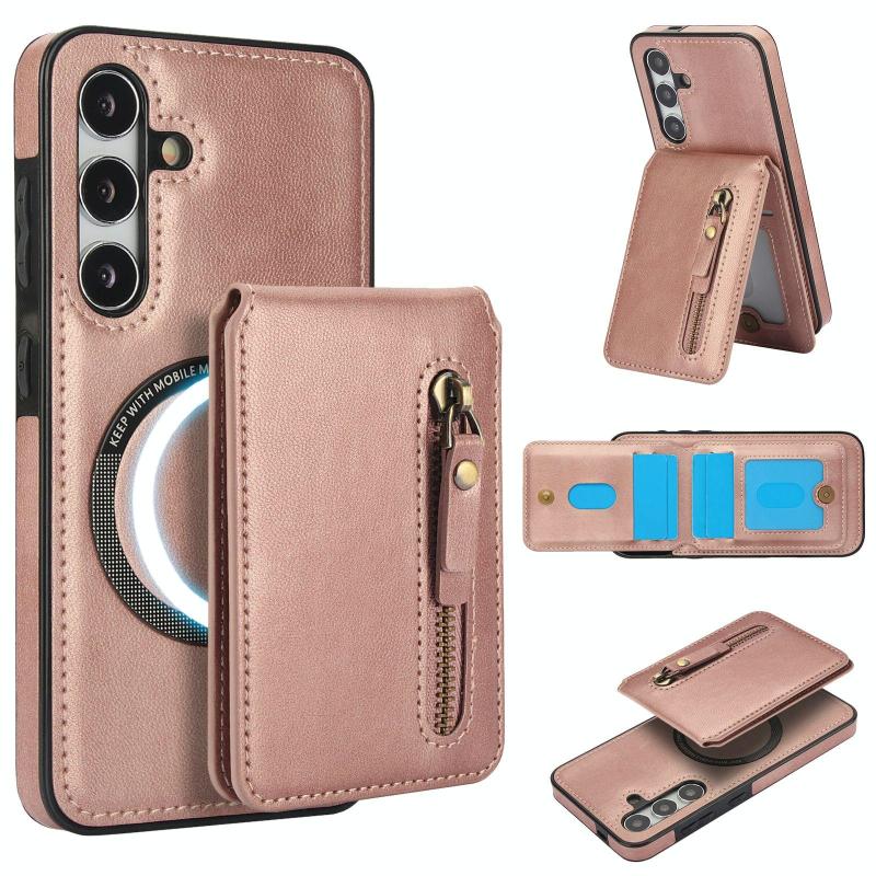 For Samsung Galaxy A55 5G Zipper Wallet Split MagSafe Leather Back Phone Case(Rose Gold)