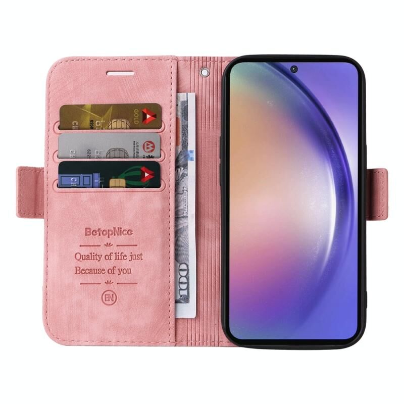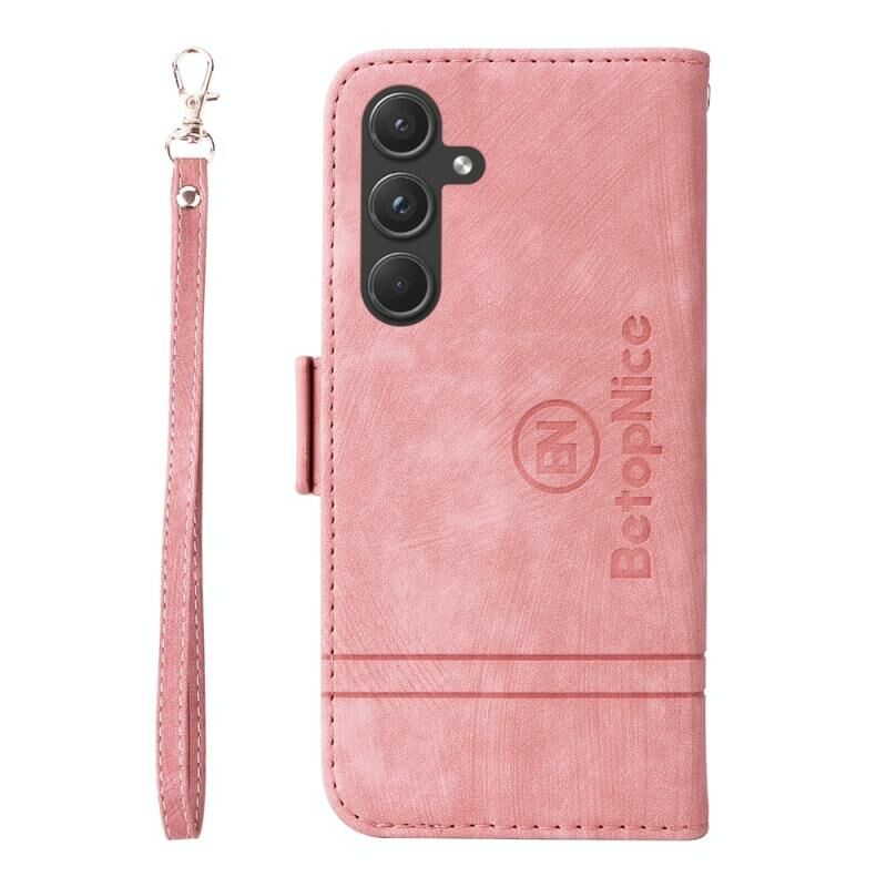 Για Samsung Galaxy A55 BETOPNICE Δερμάτινη θήκη τηλεφώνου με αγκράφα διπλής όψης (ροζ) (BETOPNICE)