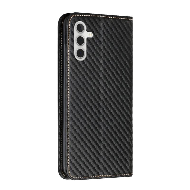 Για Samsung Galaxy A55 Carbon Fiber Texture Flip κάτοχος δέρμα τηλέφωνο υπόθεση (Μαύρο)