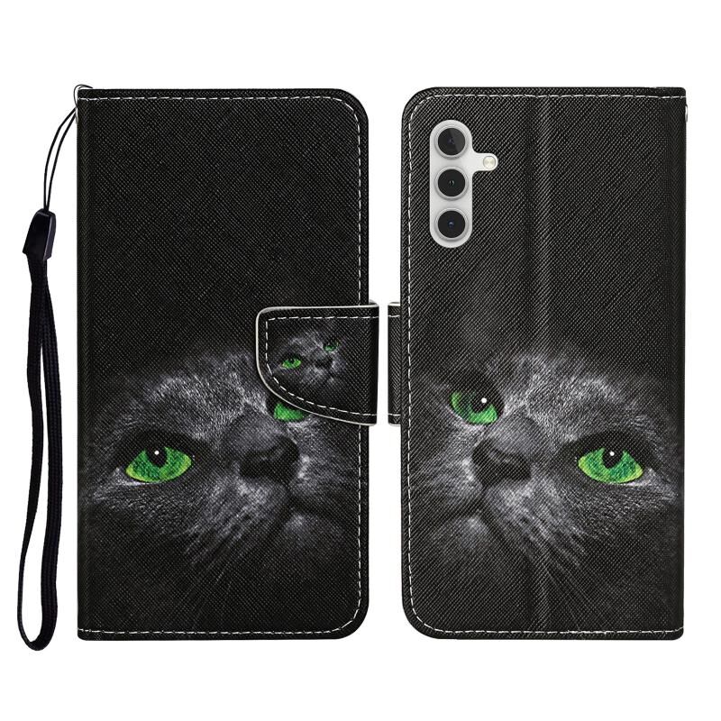 Θήκη τηλεφώνου Samsung Galaxy A55 από δέρμα με σχέδιο πολύχρωμου σχεδίου και πτυσσόμενη (Μαύρη γάτα)