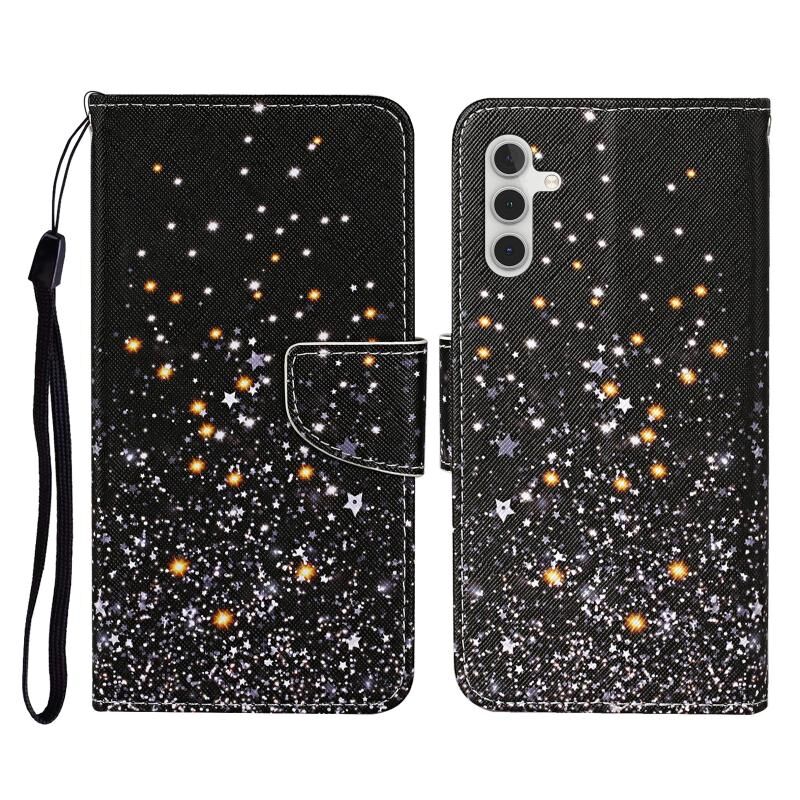 Θήκη τηλεφώνου Samsung Galaxy A55 από δέρμα με σχέδιο πολύχρωμου σχεδίου και πτυσσόμενη (Μαύρο Πεντάγραμμο)