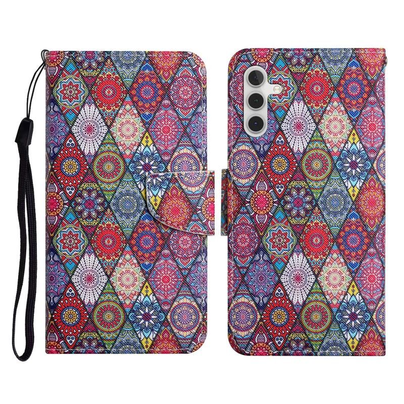 Θήκη τηλεφώνου Samsung Galaxy A55 από δέρμα με σχέδιο πολύχρωμης ζωγραφικής (Καλέιδοσκοπικό Διαμάντι)