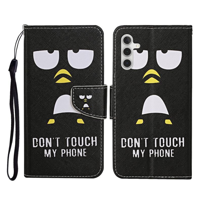 Θήκη τηλεφώνου Samsung Galaxy A55 από δέρμα με σχέδιο πολύχρωμης ζωγραφικής (Πιγκουίνος)