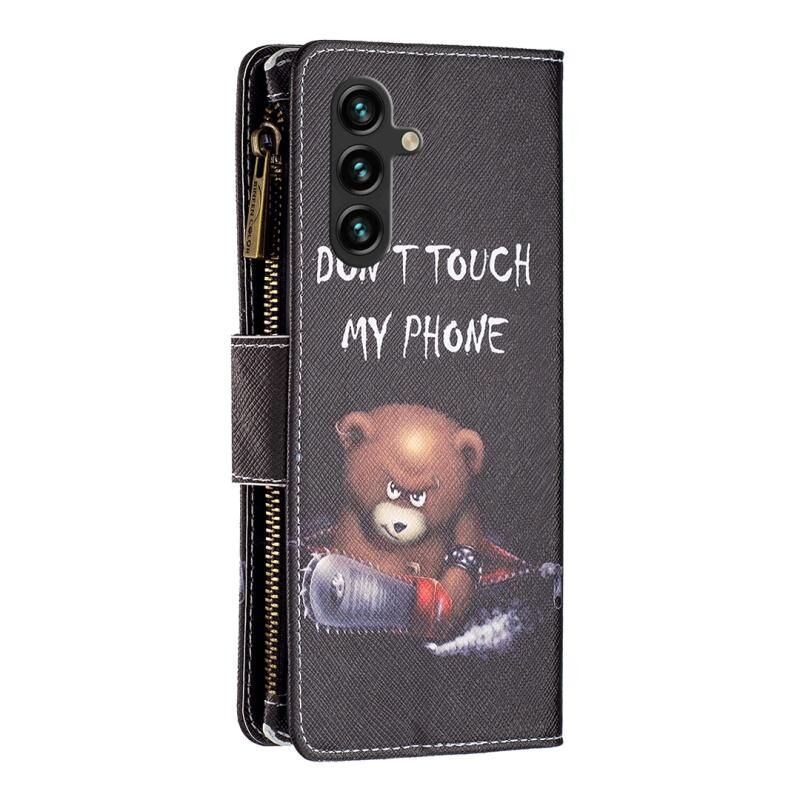 Θήκη τηλεφώνου Samsung Galaxy A55 από δέρμα με φερμουάρ και πολύχρωμο σχέδιο (Αρκούδα)