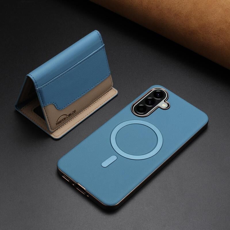 Θήκη τηλεφώνου με μαγνητική κάρτα οριζόντια για Samsung Galaxy A55, με αντιστοίχιση χρώματος και προστασία RFID, συμβατή με MagSafe (Μωβέ Γαλάζιο)
