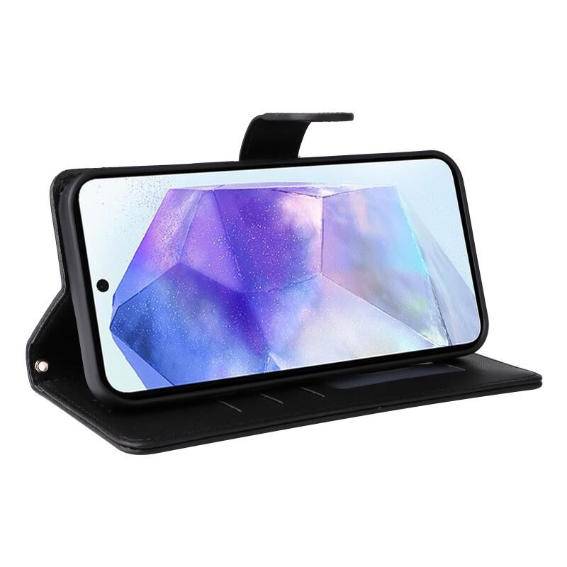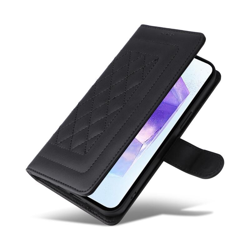 Για Samsung Galaxy A55 Diamond Lattice δέρμα Flip υπόθεση τηλεφώνου (Μαύρο)