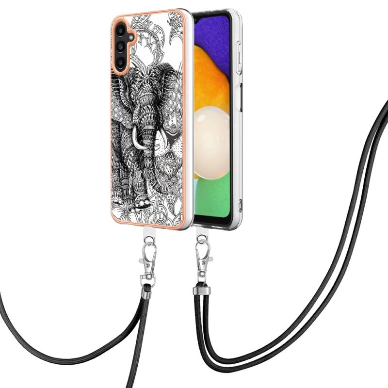 For Samsung Galaxy A55 Electroplating Dual-side IMD Phone Case with Lanyard(Totem Elephant)