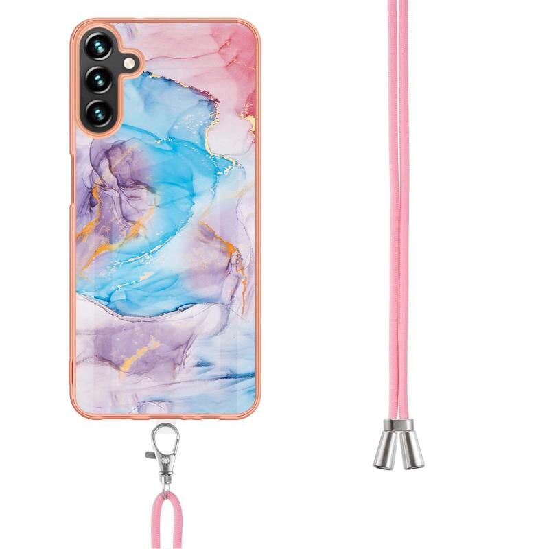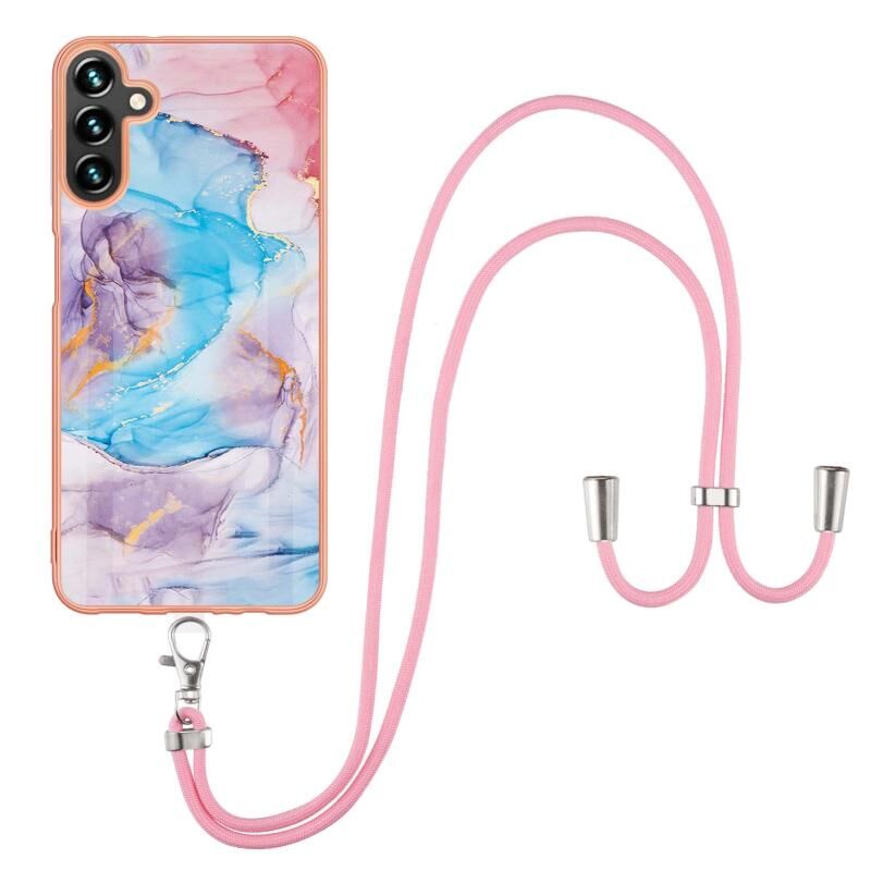 Θήκη κινητού τηλεφώνου Samsung Galaxy A55 με επιμετάλλωση IMD TPU με κορδόνι (Ροζ Λέπια)