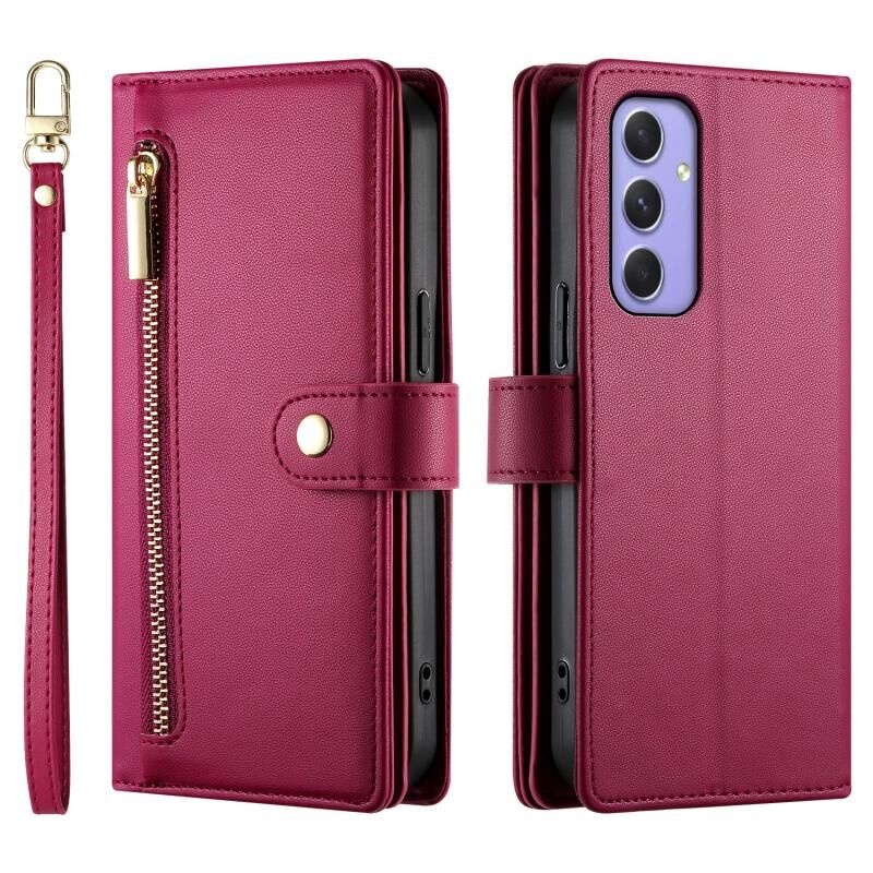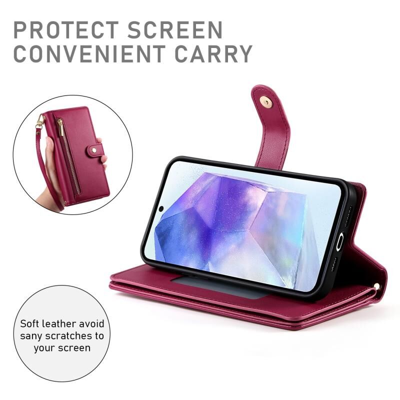 Για Samsung Galaxy A55 Nine Card-slot φερμουάρ πορτοφόλι τσάντα δερμάτινη θήκη τηλεφώνου (Κόκκινο)