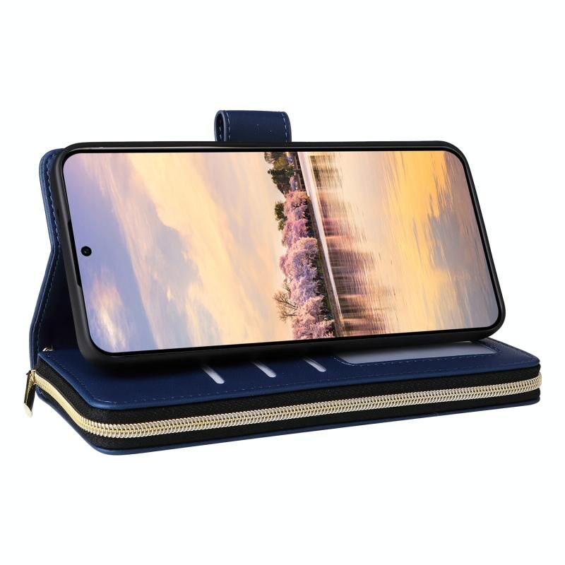 Για Samsung Galaxy A55 Εννέα-κάρτα Slots φερμουάρ πορτοφόλι τσάντα δέρμα υπόθεση τηλεφώνου (Μπλε)