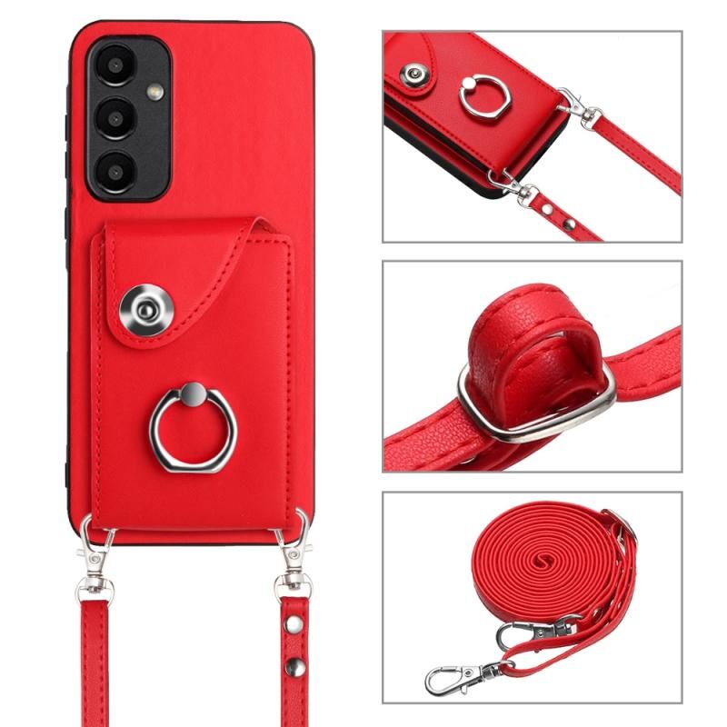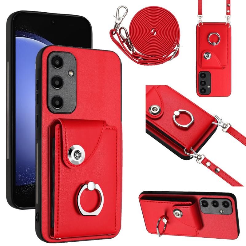Για Samsung Galaxy A55 Οργανική κάρτα τσάντα τσάντα δαχτυλίδι κάτοχος θήκη τηλεφώνου με μακρύ κορδόνι (κόκκινο)