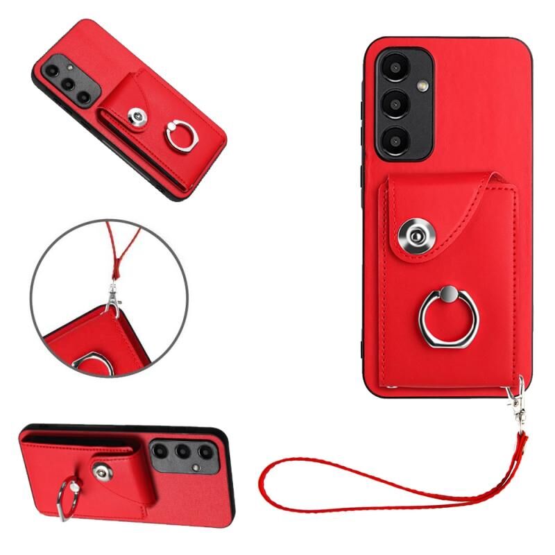 Για Samsung Galaxy A55 Οργανική κάρτα τσάντα τσάντα δαχτυλίδι κάτοχος PU θήκη τηλεφώνου με κορδόνι (κόκκινο)