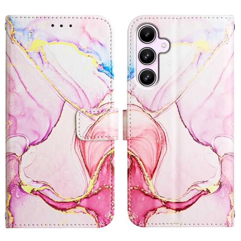 Θήκη τηλεφώνου Samsung Galaxy A55 PT003 με σχέδιο μάρμαρου, δερμάτινη, αναδιπλούμενη (Χρυσορόδινο)