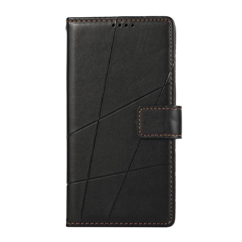 Θήκη τηλεφώνου Samsung Galaxy A55 από γνήσιο δέρμα PU με ανάγλυφη υφή και λεπτομέρειες γραμμής (Μαύρο)